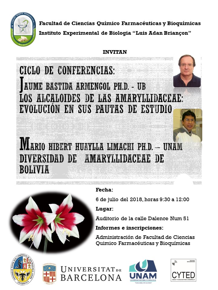 LOS ALCALOIDES DE LAS AMARYLLIDACEAE: EVOLUCIÓN EN SUS PAUTAS DE ESTUDIO en: FACULTAT DE CIENCIAS QUÍMICO FARMACEUTICAS Y BIOQUÍMICAS. INSTITUTO EXPERIMENTAL DE BIOLOGIA "LUIS ADAN BRIANÇON"