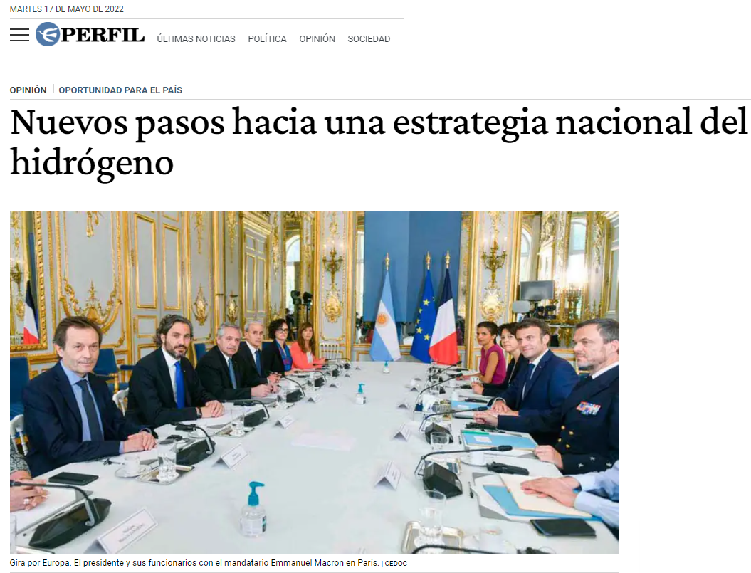 En la reciente gira presidencial por Europa, en conversaciones con el canciller alemán Olaf Scholz, el presidente de Francia, Emmanuel Macron, y el Presidente del Gobierno español, Pedro Sánchez, quedó en claro que el hidrógeno tiene un rol central en la transición energética global, y que representa una ventana de oportunidad para la Argentina, así como la posibilidad de consolidar sinergias entre nuestro país y Europa.