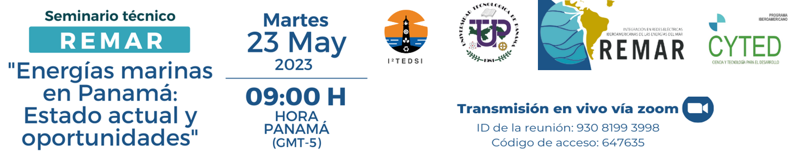 De nuevo les invito a un nuevo seminario de la Red REMAR, el correspondiente al mes de mayo. En esta ocasión, nuestros compañeros de Panamá nos presentarán los últimos desarrollos que se están llevando a cabo en Panamá en relación con las energías del mar, así como algunas oportunidades interesantes que se están planteando desde el punto de vista estratégico. El seminario será impartido por D. Arthur James Rivas y por D. José Rodríguez.