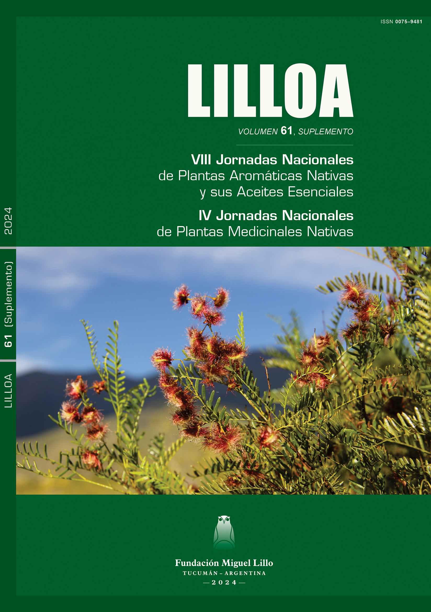 LILLOA VOLUMEN 61, SUPLEMENTO VIII Jornadas Nacionales de Plantas Aromáticas Nativas y sus Aceites Esenciales IV Jornadas Nacionales de Plantas Medicinales Nativas