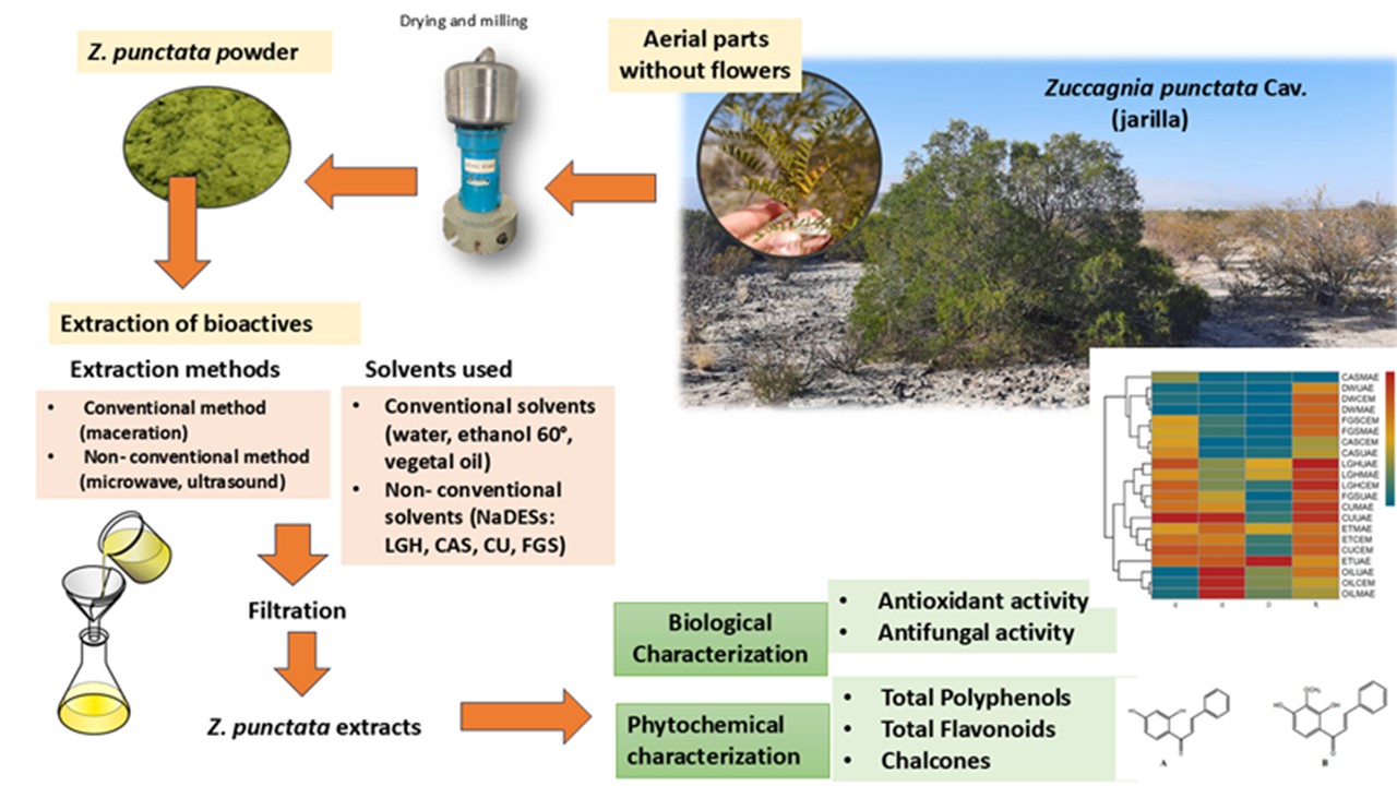 Chemical-Functional Analysis of Extracts Obtained from Zuccagnia punctata Powder by Using Green Solvents (NaDESs) in conjunction with traditional and non-traditional techniques