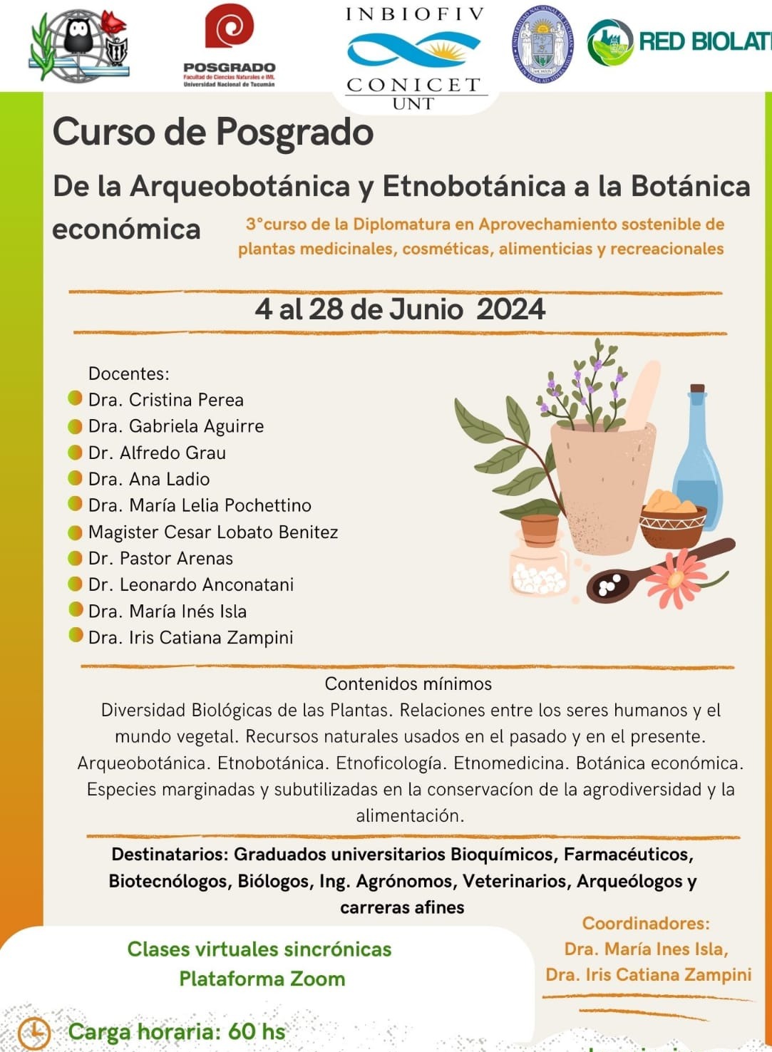 Proximamente curso de Posgrado: De la Arqueobotánica y Etnobotánica a la Botánica económica