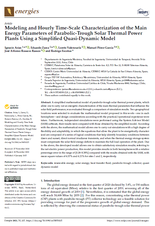 Modeling and Hourly Time-Scale Characterization of the Main Energy Parameters of Parabolic-Trough Solar Thermal Power Plants Using a Simplified Quasi-Dynamic Model