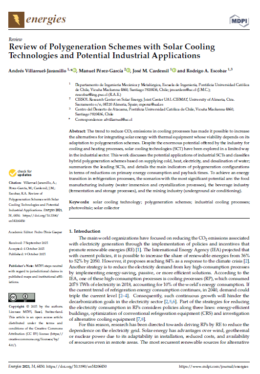 Review of Polygeneration Schemes with Solar Cooling Technologies and Potential Industrial Applications
