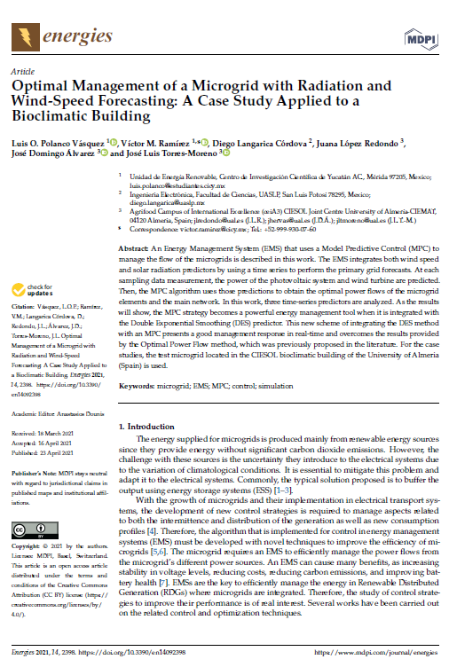 Optimal Management of a Microgrid with Radiation and Wind-Speed Forecasting: A Case Study Applied to a Bioclimatic Building