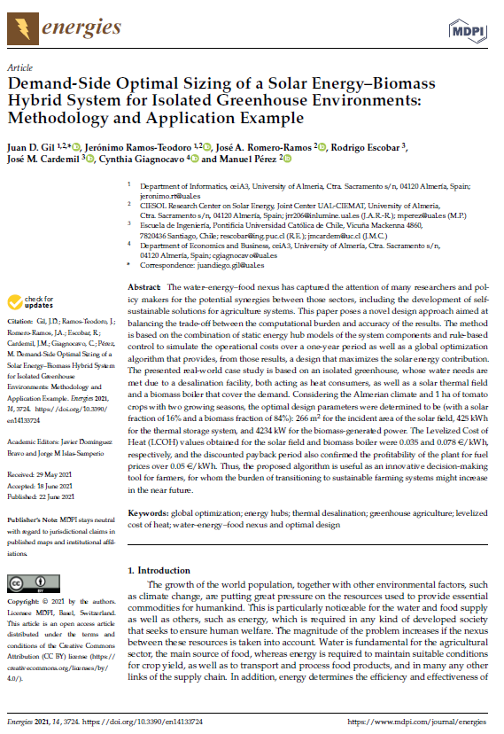 Demand-Side Optimal Sizing of a Solar Energy–Biomass Hybrid System for Isolated Greenhouse Environments: Methodology and Application Example