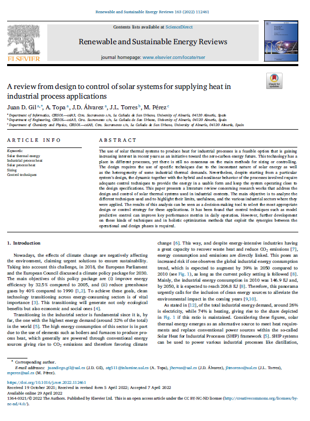 A review from design to control of solar systems for supplying heat in industrial process applications