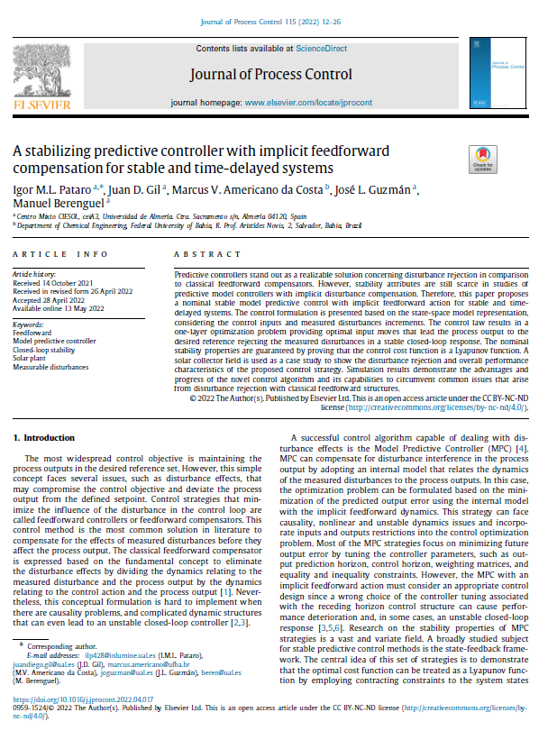 A stabilizing predictive controller with implicit feedforward compensation for stable and time-delayed systems