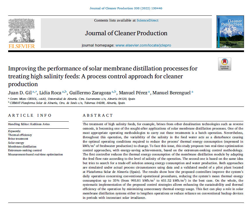 Improving the performance of solar membrane distillation processes for treating high salinity feeds: A process control approach for cleaner production