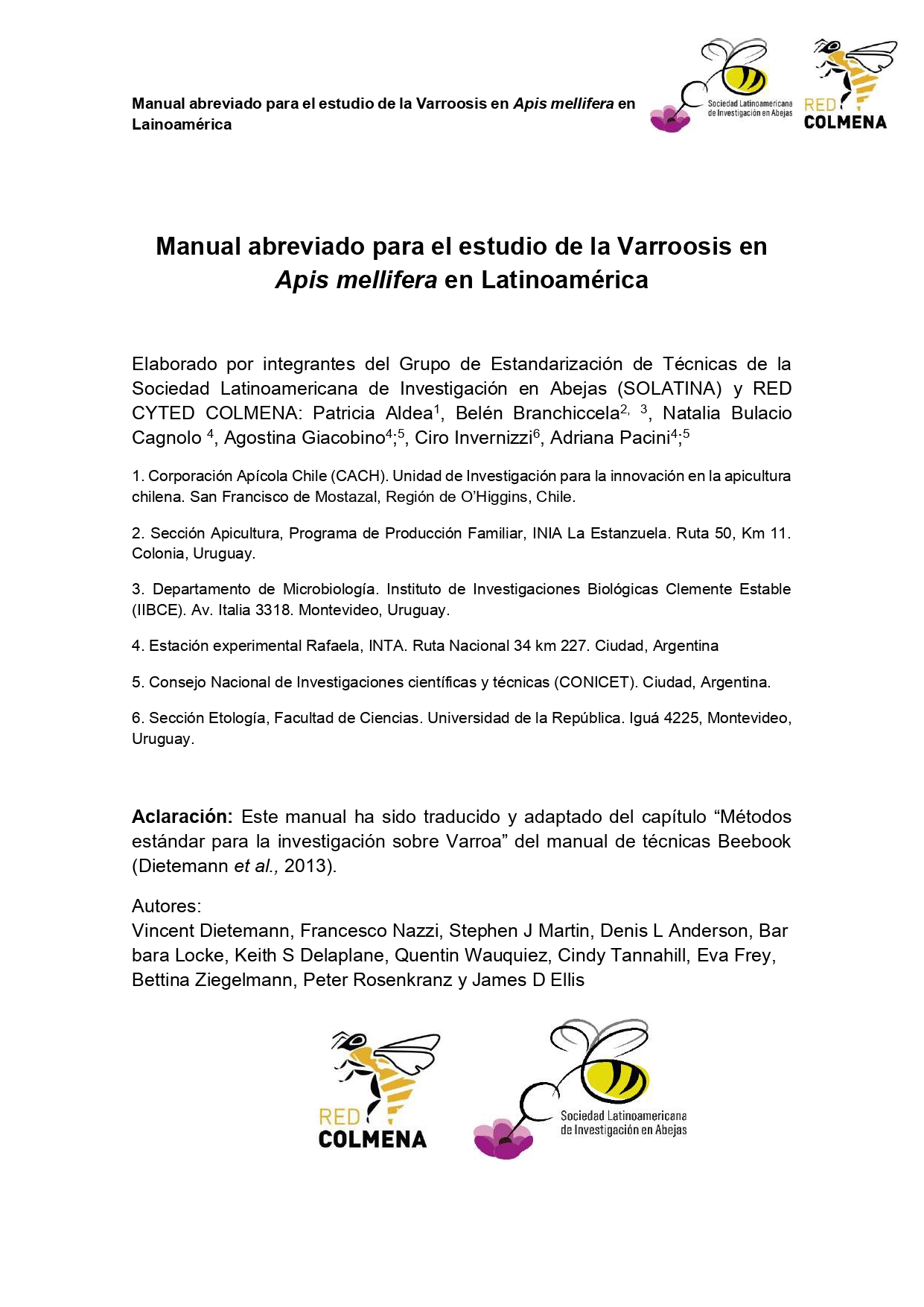 Manual abreviado para el estudio de la Varroosis en Apis mellifera en Latinoamérica