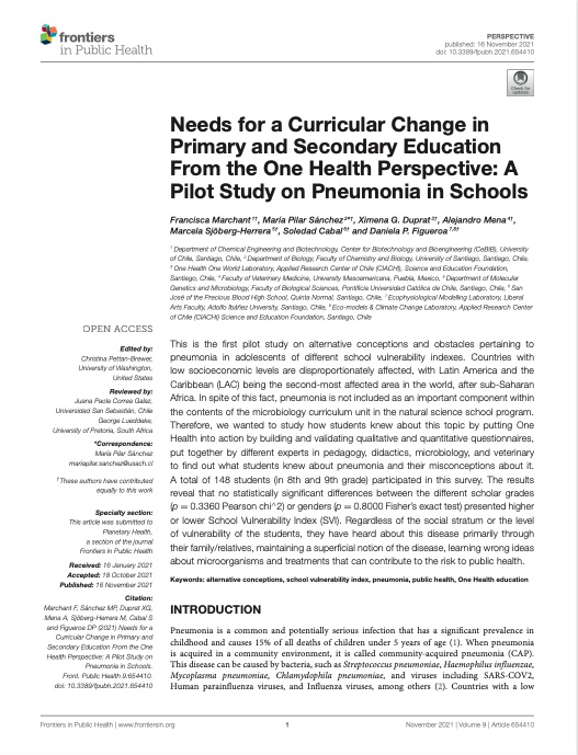 Needs for a Curricular Change in Primary and Secondary Education From the One Health Perspective: A Pilot Study on Pneumonia in Schools