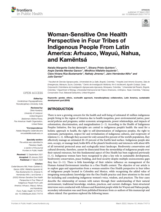 Woman-Sensitive One Health Perspective in Four Tribes of Indigenous People From Latin America: Arhuaco, Wayuú, Nahua, and Kamëntsá