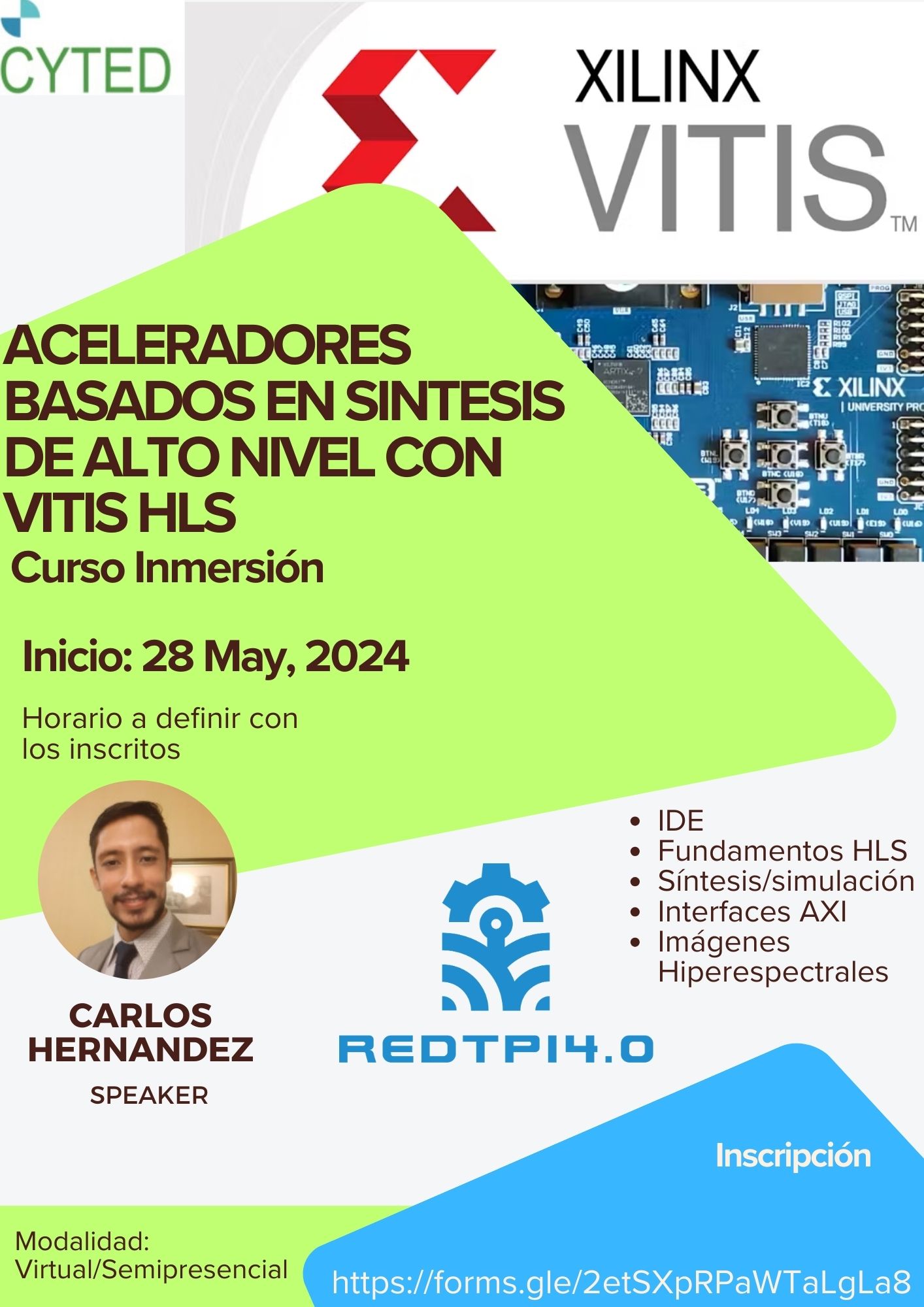 El curso se enfoca en los fundamentos para el uso de la herramienta de síntesis de alto nivel para crear un componente de hardware dentro de una arquitectura para acelerar el procesamiento de datos masivos. Para ello se hará uso de tarjetas de desarrollo basados en FPGA para fundamentar el proceso de diseño y desarrollar habilidades para el uso del ambiente integrado de desarrollo. Para finalizar con un caso desafío para integrar operadores en imágenes hiperespectrales los cuales por su naturaleza presentan demandas de procesamiento muy altas