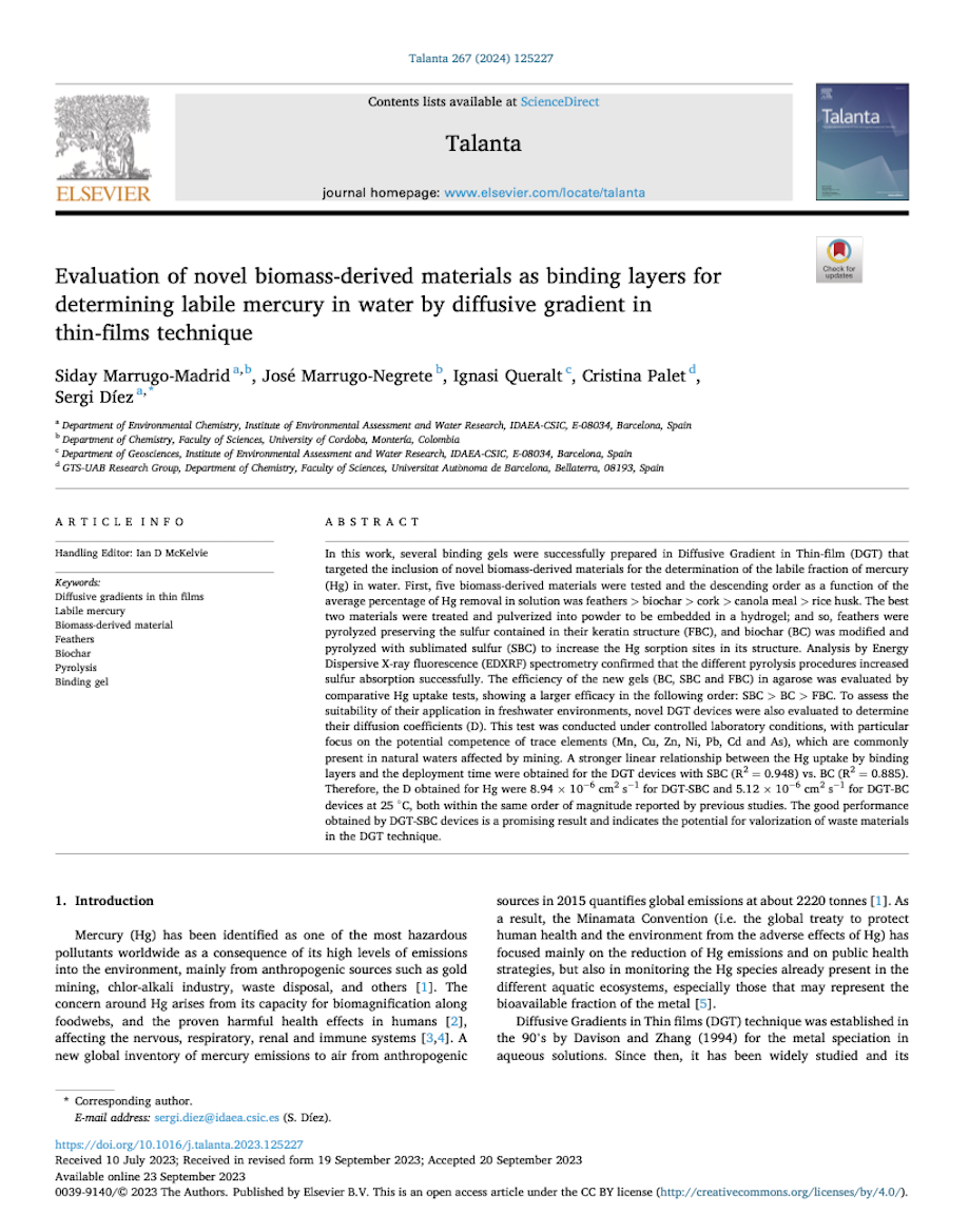 Evaluation of novel biomass-derived materials as binding layers for determining labile mercury in water by diffusive gradient in thin-films technique
