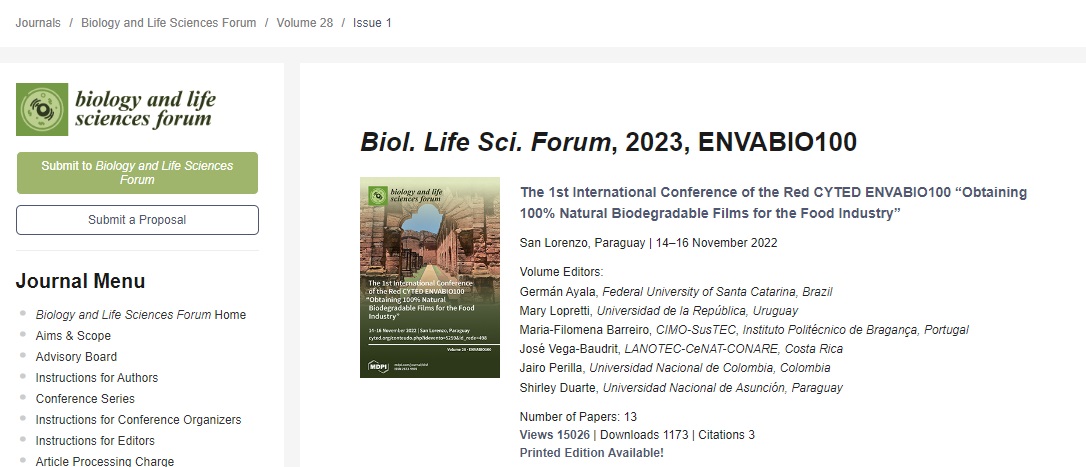 The 1st International Conference of the Red CYTED ENVABIO100 ?Obtaining 100% Natural Biodegradable Films for the Food Industry?