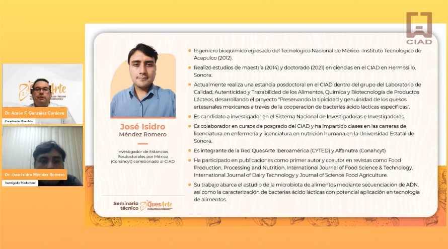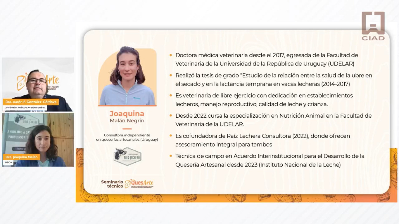 El pasado 24 de mayo, Silvana presentó desde el CIAD el seminario técnico intitulado: “Caracterización de los quesos artesanales en Uruguay: situación actual¨. Este seminario se transmitió de manera virtual a través de las redes sociales del Centro de Investigación en Alimentación y Desarrollo (Facebook/YouTube) y contó con la participación de estudiantes y académicos, quienes pudieron conocer los aspectos más sobresalientes de la quesería artesanal de aquel país, así como algunos de los trabajos realizados desde la Facultad de Medicina Veterinaria de la UdelaR en favor de la quesería artesanal uruguaya.