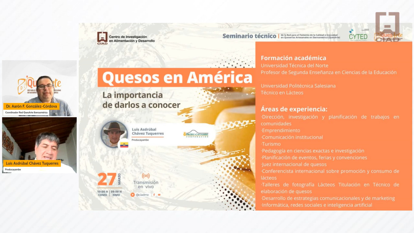 En esta edición nos acompañan integrantes de la Red Quesarte, en el marco del Proyecto de divulgación para el fomento de la Calidad e inocuidad en Queserías Artesanales en Iberoamerica, en el que participan instituciones Nacionales e Internacionales. Quesarte Iberoamérica (122RT0126).