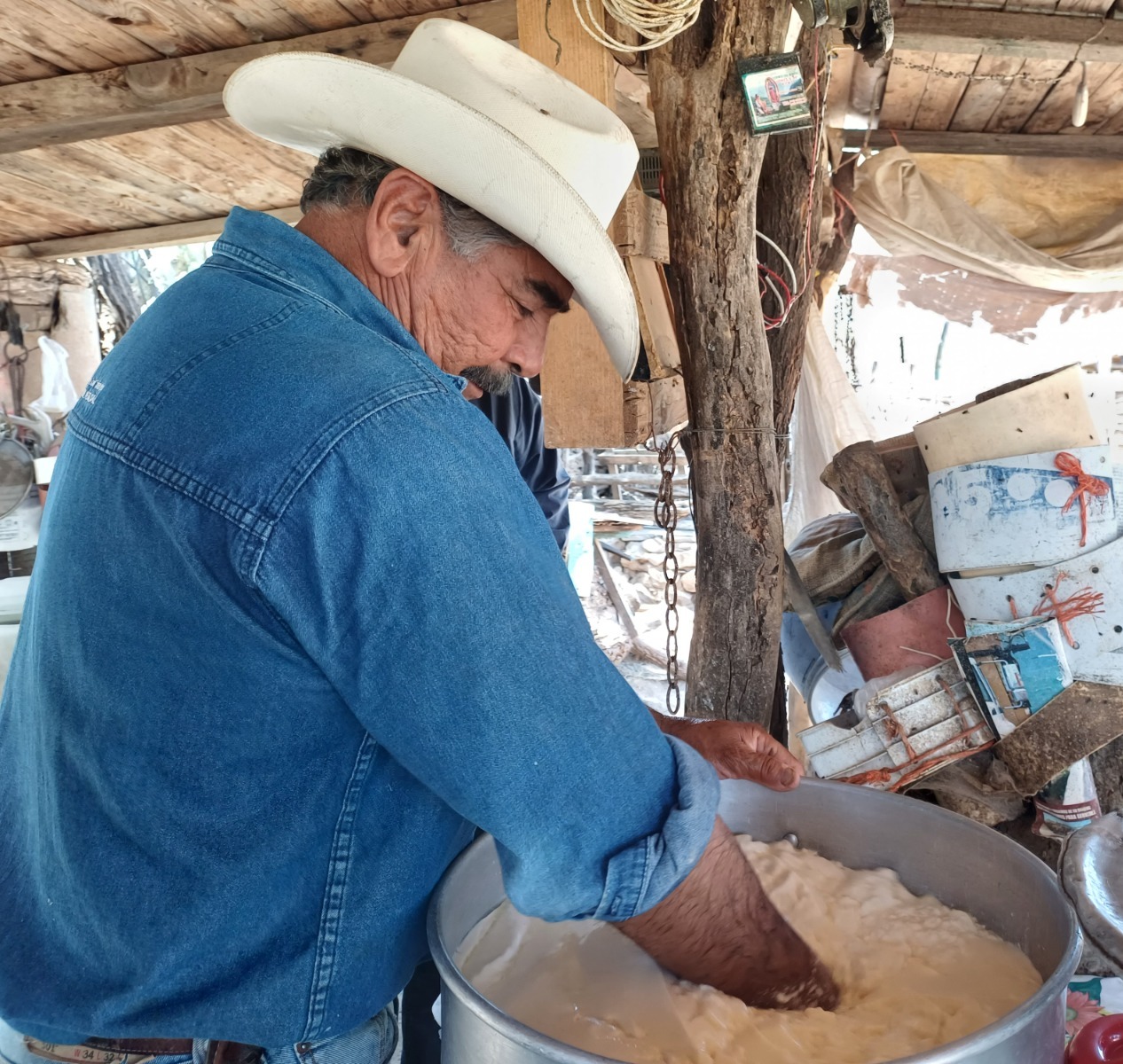 Para conocer el proceso de uno de los quesos artesanales que se producen en Sonora, el queso Fresco, se realizó un viaje técnico a Mazatán, Sonora (29°0′20.3″N 110°8′19.5″O), población ubicada a 87 Km de Hermosillo, capital del estado de Sonora. En esta visita se contó con el apoyo y colaboración de Yulma Espinoza Félix, productora artesanal de queso, quien acompaño a las y los visitantes en un tour quesero que incluyó la visita a la finca “El Coyote”, de César Ahumada Córdova, para conocer el proceso de elaboración artesanal. El productor comentó sobre las técnicas y procedimientos que han ido implementando para la elaboración del queso, salvaguardar la tradición artesanal y mantener las notas sensoriales típicas. Posteriormente se realizó una degustación de quesos y se comentó al respecto de las estrategias de comercialización de los quesos producidos en Mazatán y poblaciones vecinas, junto con otros alimentos artesanales (miel, obleas, productos de panificación), lo cual es resultado del esfuerzo conjunto de productores locales. También se comentó sobre los retos que enfrentan por la falta de agua, por lo que desarrollan estrategias que les permitan sortear de la mejor manera esta situación para eficientizar el rendimiento del vital líquido.