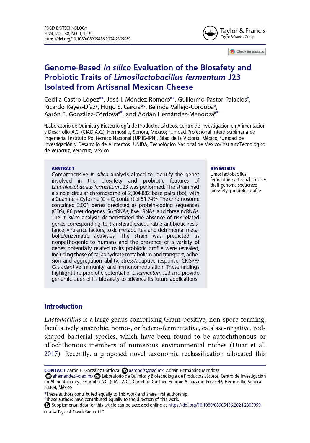 Genome-Based in silico Evaluation of the Biosafety and Probiotic Traits of Limosilactobacillus fermentum J23 Isolated from Artisanal Mexican Cheese