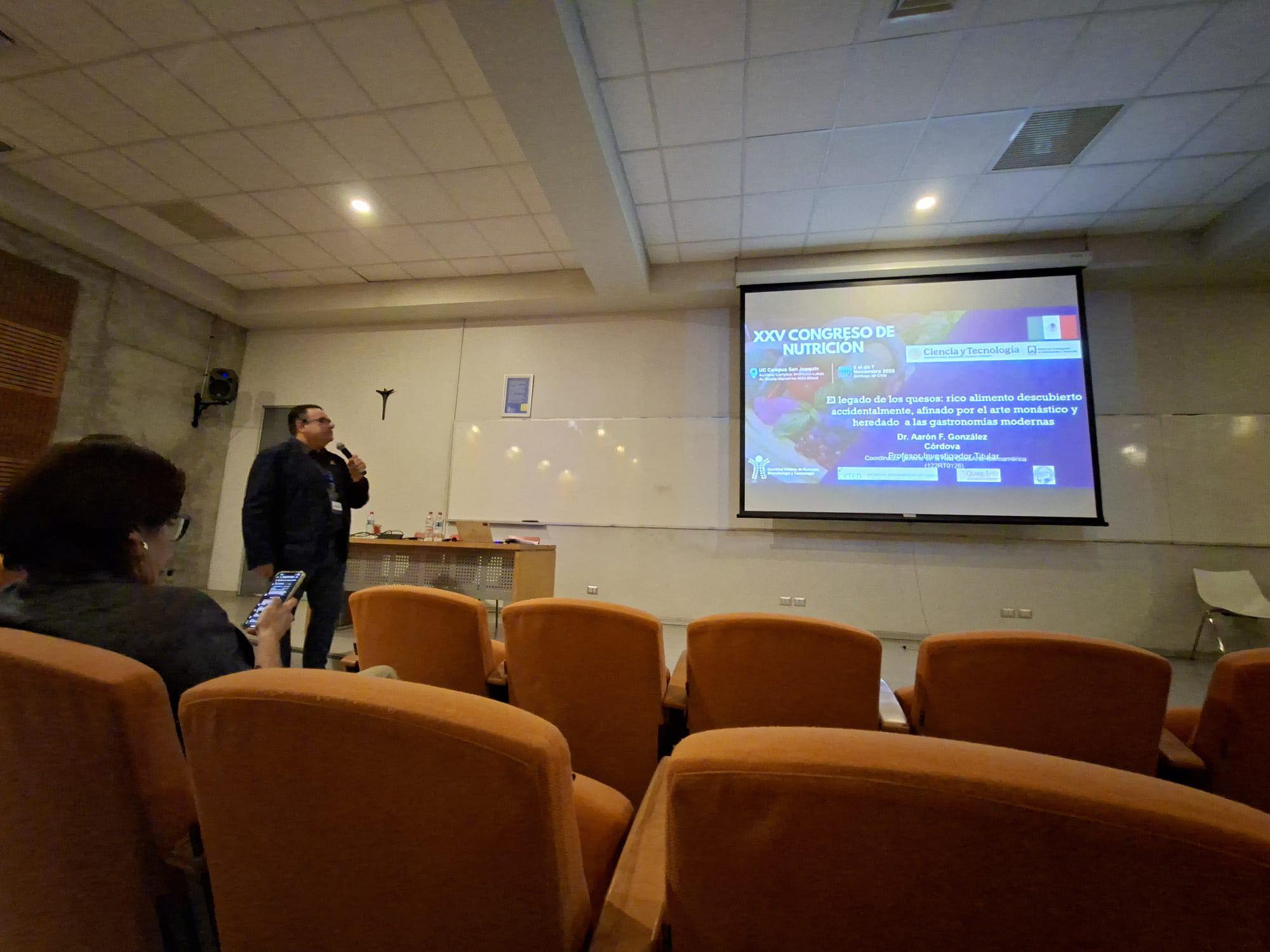 En el marco del XXV Congreso de Nutrición celebrado en Santiago, Chile, el Dr. Aarón Fernando González Córdova presentó su conferencia "El legado de los quesos: rico alimento descubierto accidentalmente, afinado por el arte monástico, y heredado a las gast