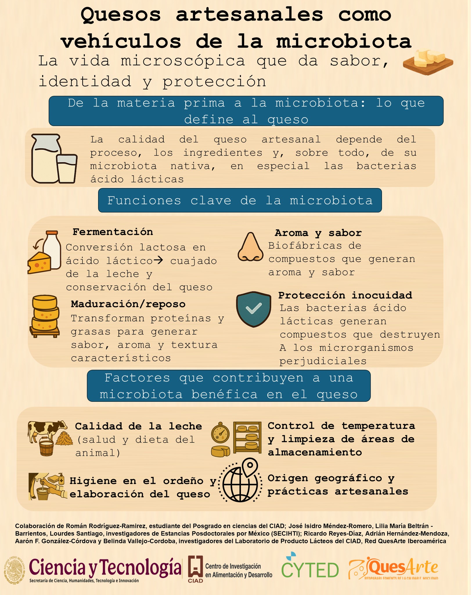Infografía: "Quesos artesanales como vehículo de la microbiota. La vida microscópica que da sabor, identidad y protección".