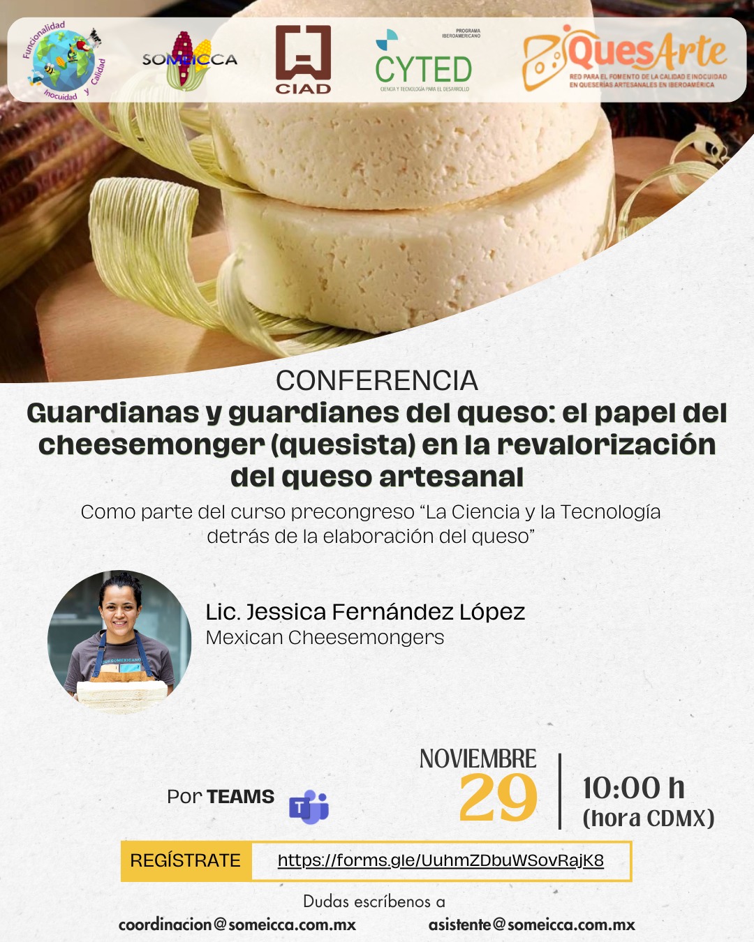 La Red QuesArte Iberoamérica del Programa Iberoamericano de Ciencia y Tecnología para el Desarrollo contó con la participación de la Lic. Jessica Fernández con su conferencia "Guardianas y guardianes del queso: el papel del cheesemonger (quesista) en la re