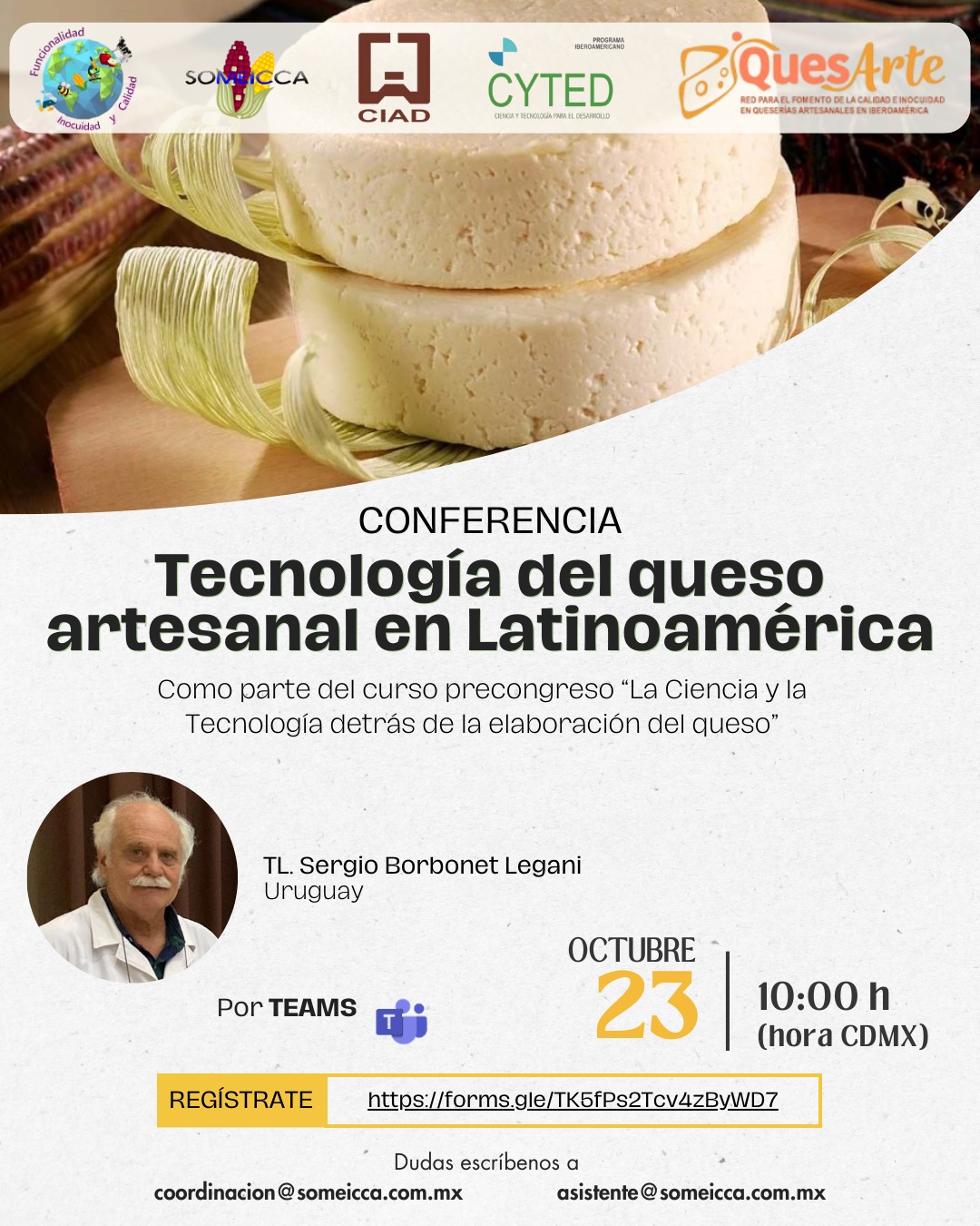La Red QuesArte Iberoamérica del Programa Iberoamericano de Ciencia y Tecnología para el Desarrollo contó con la participación de Sergio Borbonet L. con su conferencia "Tecnología del queso artesanal en Latinoamérica" en el precongreso CUCCAL 17-SOMEICCA