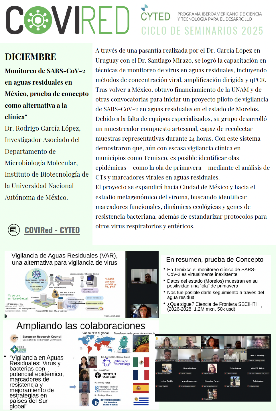 Seminario Diciembre: Monitoreo de SARS-CoV-2 en aguas residuales en México, prueba de concepto como alternativa a la clínica