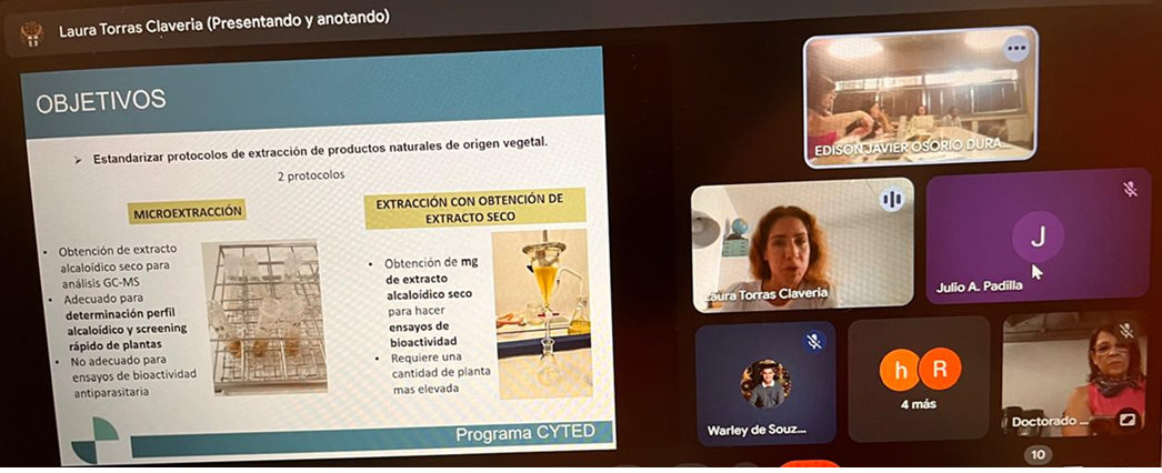 Durante la reunión, los grupos de los países presentaron los avances en el marco del proyecto, sobre la base de los objetivos planteados. Se acordaron las tareas a realizar hasta fin de año, y se planifico tentativamente para el inicio del próximo año. También se coordinaron actividades entre grupos para potenciar los logros de la RED.