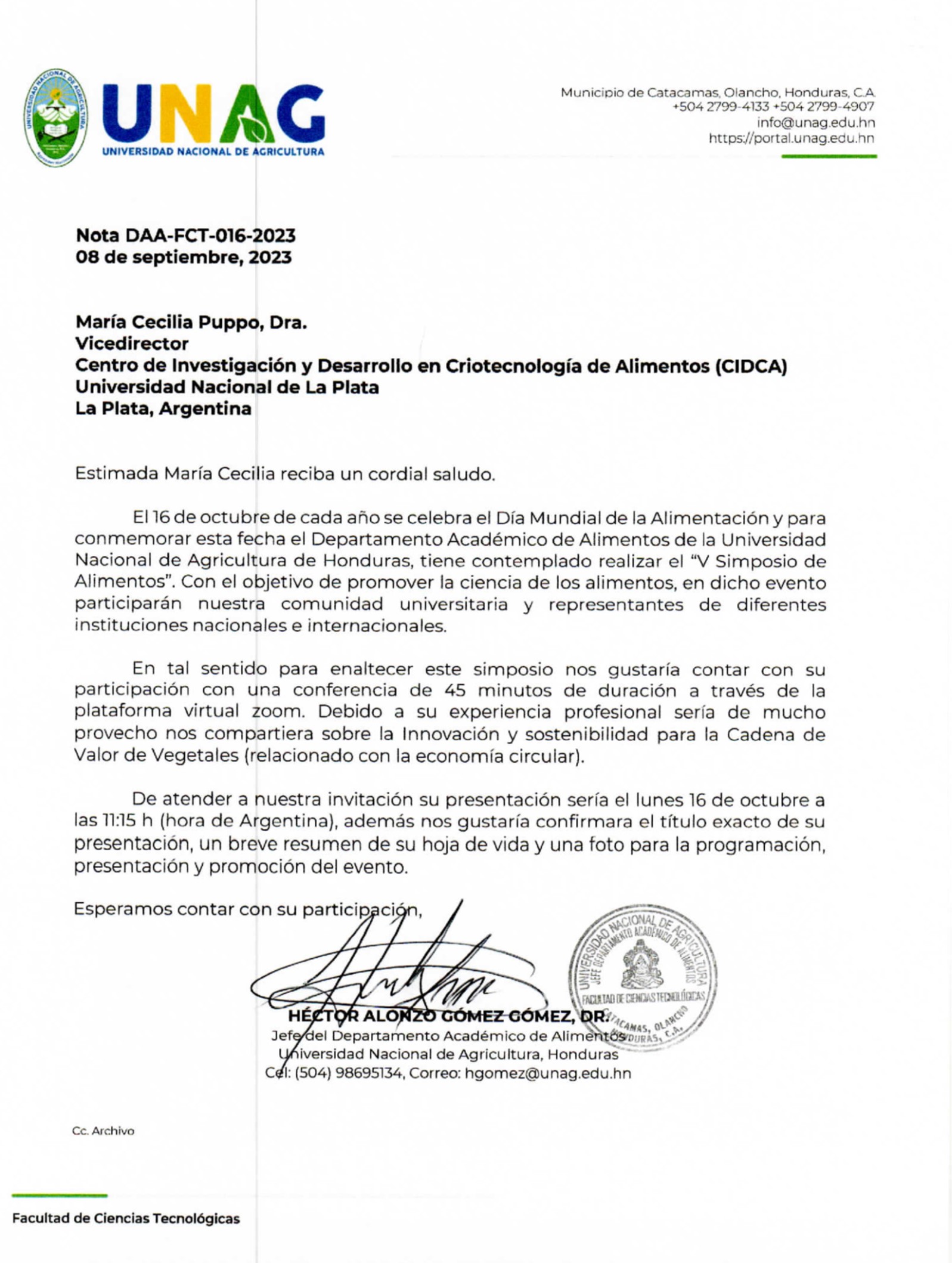 Organizador: Universidad Nacional de la Agricultura de Honduras-UNAG.