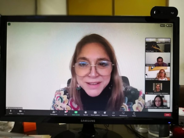 La Dra. Zuñiga-Hansen del CREAS de Chile, organizando el Webinar sobre Prototipos Alimentarios.
