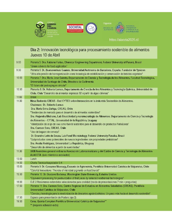 Congreso ALACCTA-SOCHITAL 2025. "Alimentos para el mañana: Ciencia, Tecnología e Innovación para una alimentación sostenible y saludable"