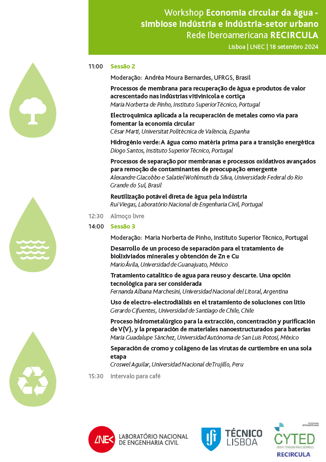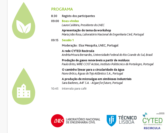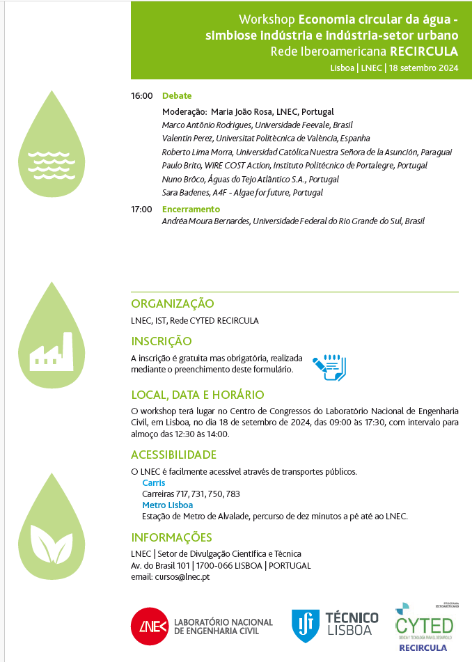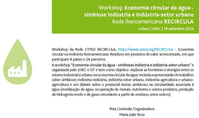 Workshop Economia circular da água -simbiose indústria e indústria-setor urbano - Rede Iberoamericana RECIRCULA