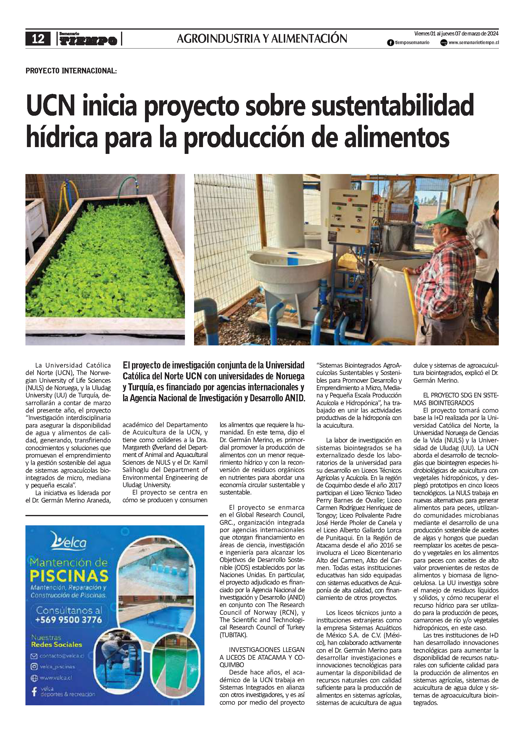 UCN inicia proyecto sobre sustentabilidad hídrica para la producción de alimentos