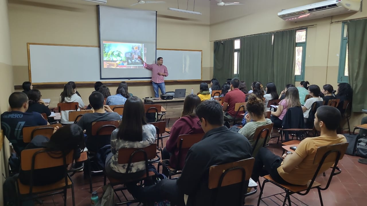 Interacción entre estudiantes de Ingeniería Ambiental y Mario Morón, miembro RedBiocultura - Bolivia