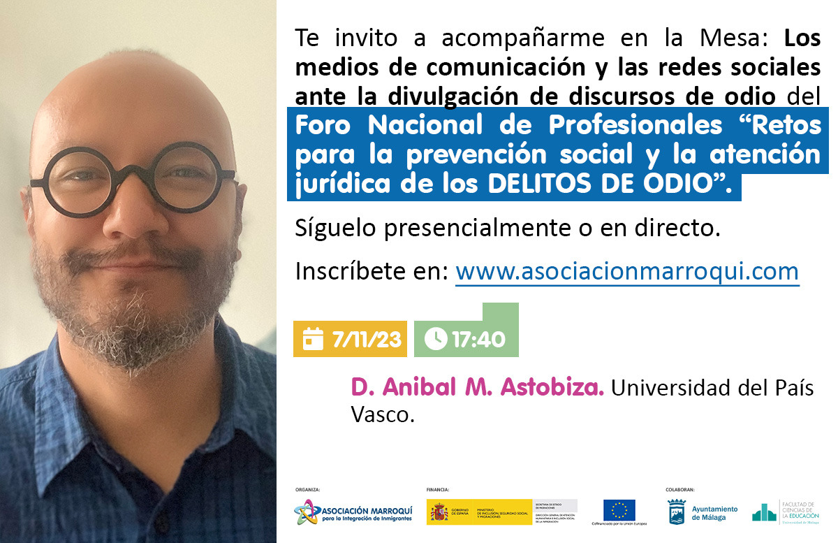 Nuestro compañero Aníbal M. Astobiza presentará el próximo 7 de noviembre la comunicación "Derechos fundamentales y libertad algorítmica" en el FORO NACIONAL DE PROFESIONALES. RETOS PARA LA PREVENCIÓN SOCIAL Y LA ATENCIÓN JURÍDICA DE LOS DELITOS DE ODIO.