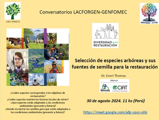 Conferencia dictada por el Dr Evert Thomas, de la Alianza Bioversity International-CIAT en el marco de los conversatorios de las redes LACFORGEN-GENFOMEC. En la década de la restauración promocionada por Naciones Unidas el doctor Thomas nos presentó los trabajos realizados en varios países de ALAC y el desarrollo de una aplicación para la selección de especies adecuadas para la restauración en diferentes condiciones ambientales y los viveros que disponen de ellas.