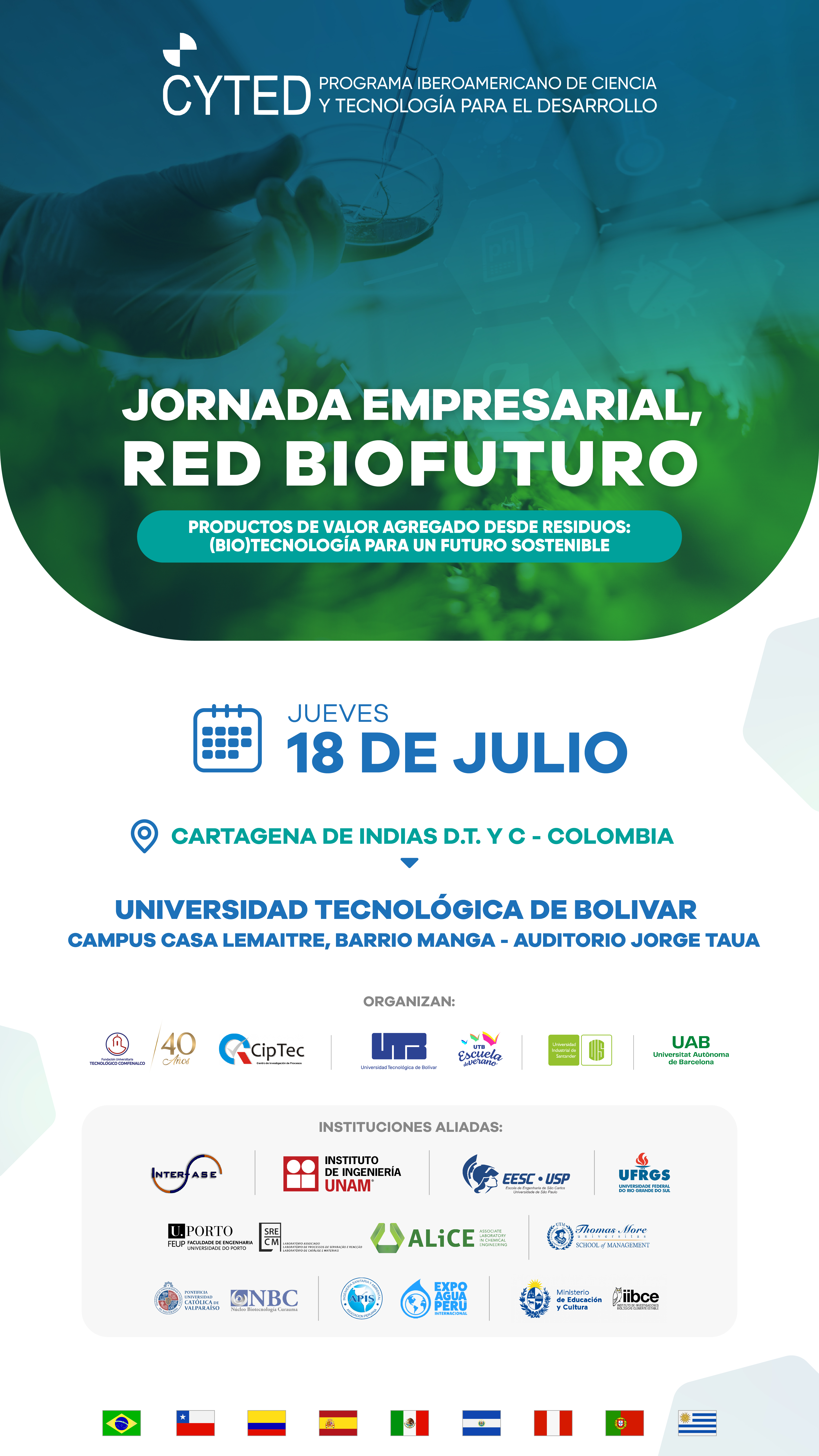 Jornada de Encuentro Empresarial de la Red BioFuturo CYTED. Universidad Tecnológica de Bolívar, Campus Casa Lemaite, Barrio Manga - Auditorio Jorge Taua.