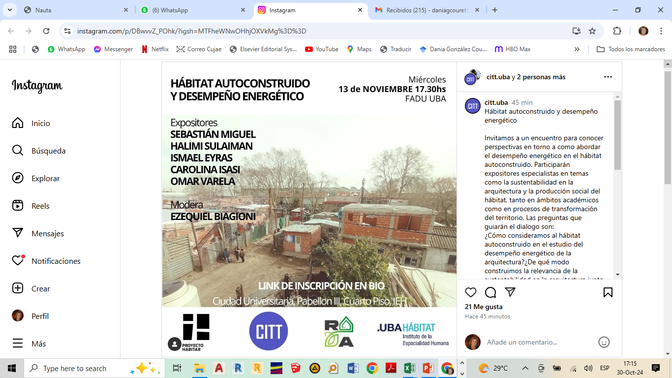 Dia y horario: Miércoles 13 de noviembre de 2024 - 17.30hs Lugar: IEH FADU-UBA (4to piso)