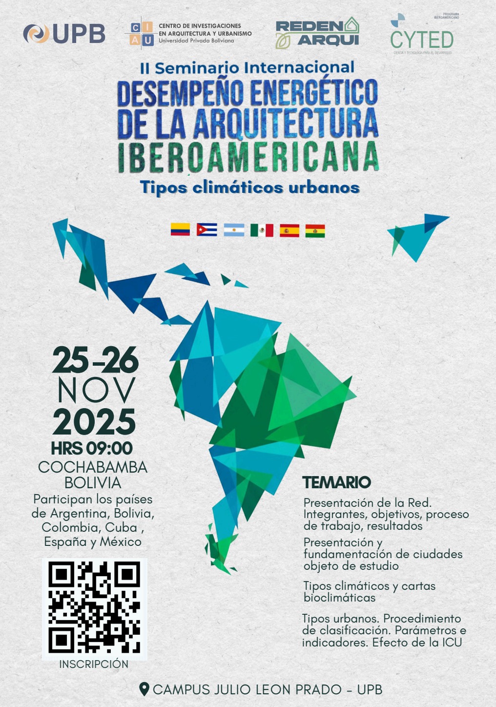 Durante los días 25 y 26 de noviembre de 2025 tendrá lugar el Segundo Seminario Internacional de la red CYTED REDENARQUI en la ciudad de Cochabamba.