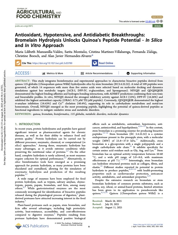 Antioxidant, Hypotensive, and Antidiabetic Breakthroughs: Bromelain Hydrolysis Unlocks Quinoa?s Peptide Potential - In Silico