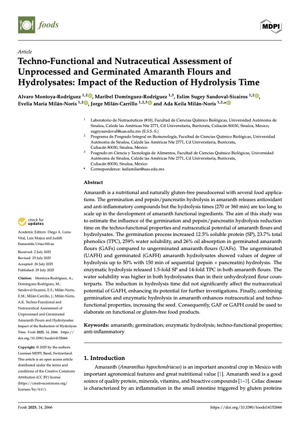 Techno-Functional and Nutraceutical Assessment of Unprocessed and Germinated Amaranth Flours and Hydrolysates: Impact of the Reduction of Hydrolysis Time