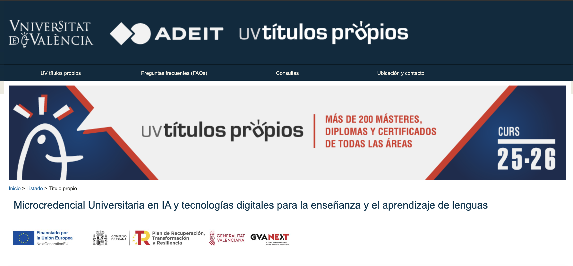 Esta microcredencial se enmarca en las iniciativas de la Red Iberoamericana sobre Ética Digital e IA Educativa (REDIE) (626RT0201, Programa CYTED), la RED-IA, el Proyecto de Innovación Educativa (ref. 3898146) del Vicerrectorado de Formación Permanente, Transformación Docente y Ocupación de la Universitat de València, el Proyecto europeo UPSkilled (ref. 2025-1-ES01-KA220-HED-000355590), el Proyecto ASPAI (A Shared Path to AI Literacy in Education), así como el Grupo de Investigación TeLL-ME (Teaching and Learning Languages in Multilingual Education), GRIAC (Research Group on Academic and Scientific Integrity) e IGALA (Interdisciplinary Group Active Learning & Assessment).