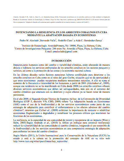 Adaptacio?n basada en Ecosistemas: alternativa para la gestio?n sostenible de los recursos marinos y costeros del Caribe