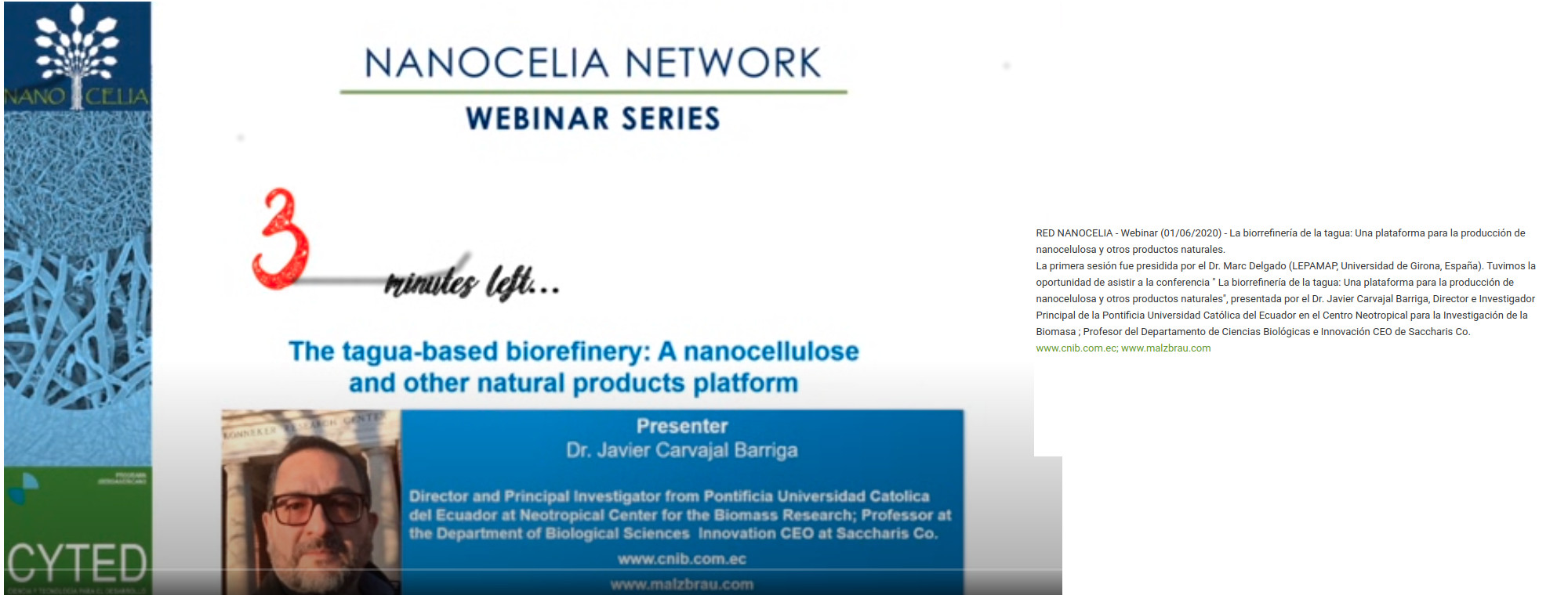 RED NANOCELIA - Webinar (01/06/2020) - La biorrefinería de la tagua: Una plataforma para la producción de nanocelulosa y otros productos naturales.