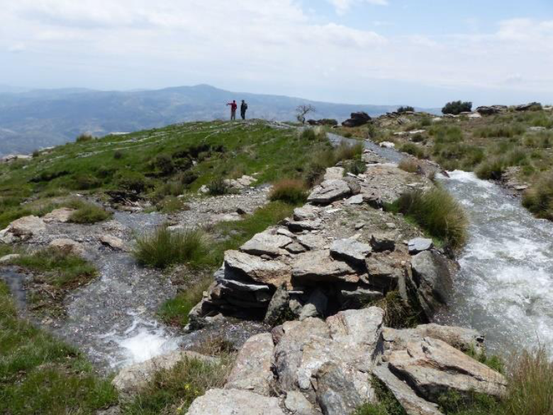 Sima de careo de la acequia de Mecina donde se vierte el agua procedente del deshielo para su infiltracio?n. La recarga producida en este sector mantiene el caudal de los manantiales que abastecen el riego y a los habitantes de la poblacio?n de Mecina Bombaro?n, en Sierra Nevada (Granada, Sur de Espan?a). Autor: Sergio Martos Rosillo/IGME.