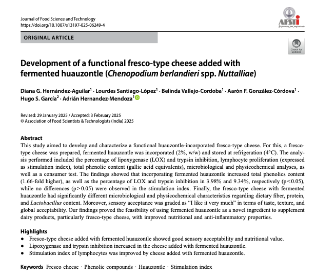 Development of a functional fresco-type cheese added with fermented huauzontle (Chenopodium berlandieri spp. Nuttalliae)