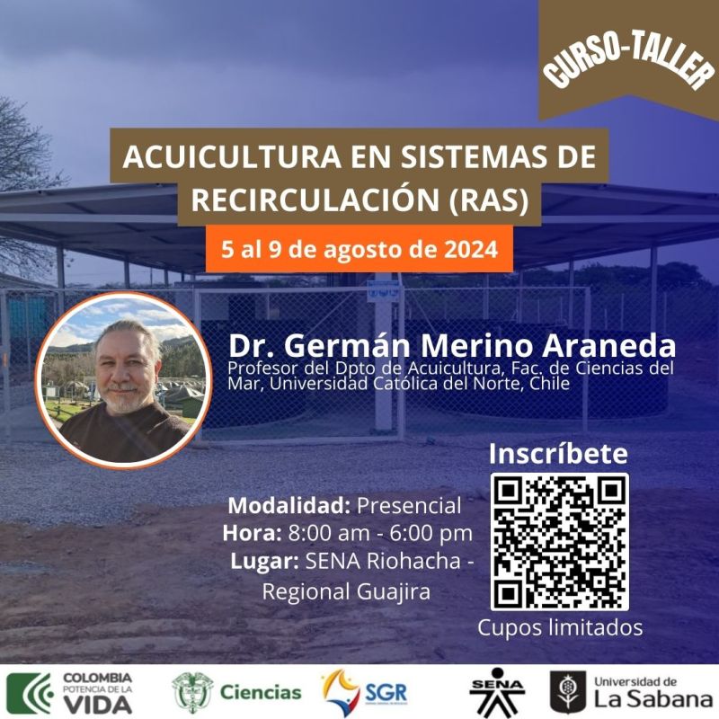 La Universidad de La Sabana y el SENA Regional La Guajira invitan a empresarios, investigadores y estudiantes a participar en el curso - taller presencial sobre Sistemas de Recirculación (RAS), impart