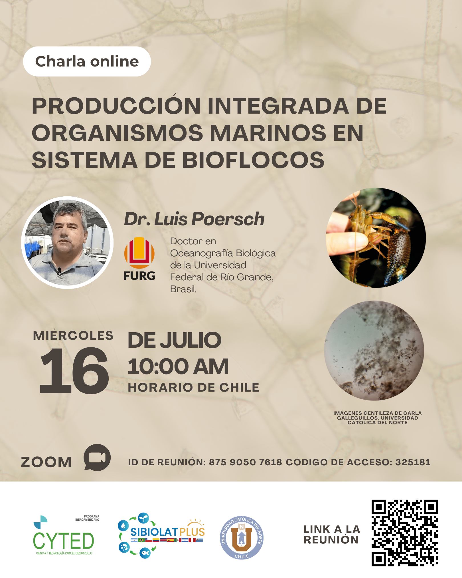 Charla Online: Producción integrada de organismos marinos en sistemas de bioflocos