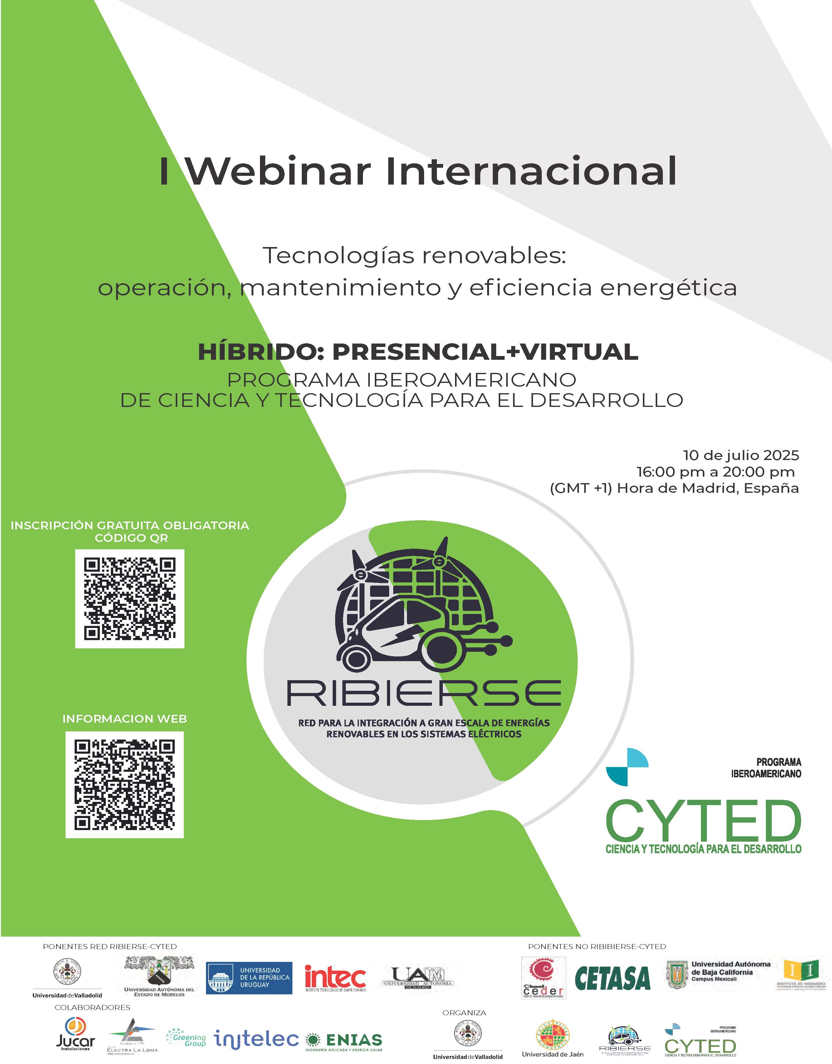 La Red Cyted RIBIERSE, Red para la integración a gran escala de energías renovables en los sistemas eléctrico, organiza este Webinar Internacional s